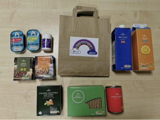 During our planning stage, we consulted a nutritionist on items to include for the food parcels, such as lentils, beans, fish, and vitamins, bearing in mind that these needed to have a long shelf life and be easily opened.